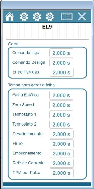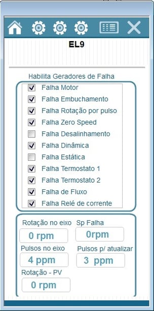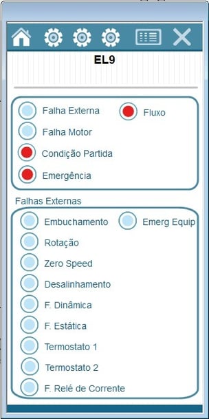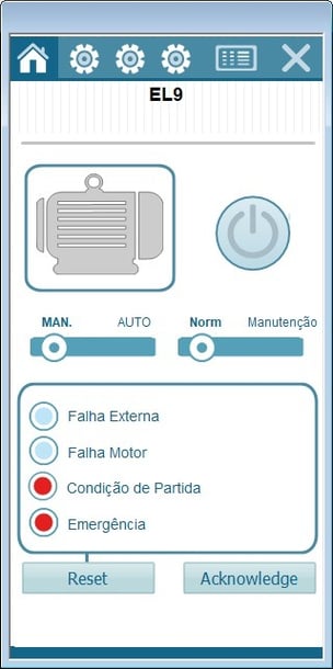 Cada motor ou válvula é acessado por um popup para ligá-los. ter acesso as falhas e ajustar parâmetros