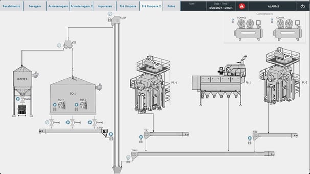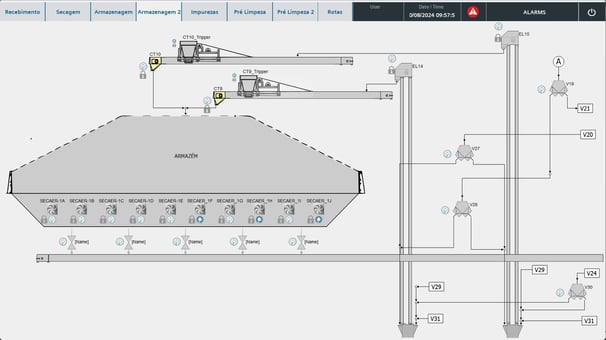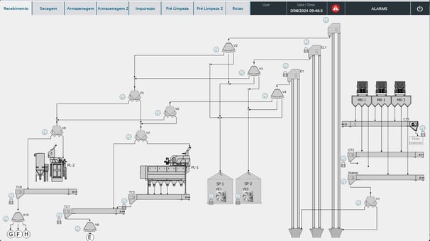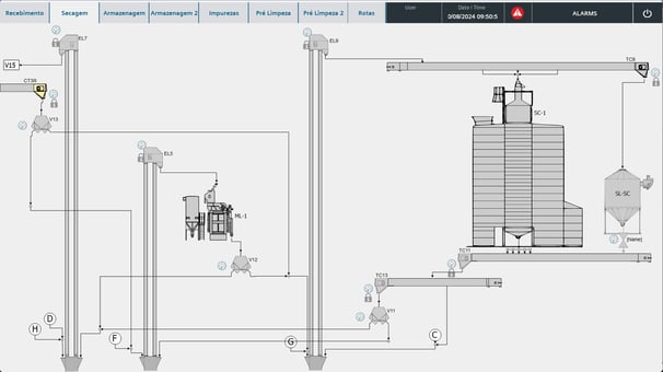 O sistema possuem várias rotas pré-estabelecidas, onde os motores e válvulas são ligadas de maneira sequencial, facilitando o trabalho da operação.